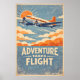A tribute to the golden age of air travel, this mid-century–inspired poster captures a classic propeller airplane soaring above stylized clouds in a timeless travel-poster style. Muted blues and warm oranges evoke sunlit skies and long-haul journeys, while clean art-deco typography anchors the design with confident optimism. Finished with a softly weathered, sun-faded texture, Adventure Takes Flight celebrates exploration, movement, and the romance of vintage aviation—perfect for travelers, pilots at heart, and lovers of retro design.