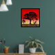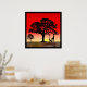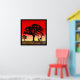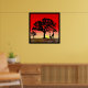 Impression d'affiches d'oeuvres graphiques colorées, avec un beau coucher de soleil et une étude en silhouettes, de girafes et d'arbres. Super idée cadeau.