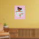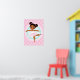 Cute African American Ballerina in rose tutu, performing an arabesque. Pink polka dots and mint green accent.