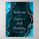 Poster Agate turquoise et Argent Accueil d'anniversaire