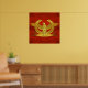 Un aigle d'or romain sur un arrière - plan de rouge antique, courbé de victoire et portant des tonnerres. SPQR.