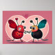 Deux Valentine Love Bugs tenant la main dans un coeur.