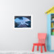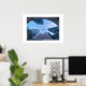 Poster shown with a photo print of a jet aircraft and a cityscape.