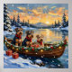 Bring bold, spirited charm to your holiday season with this handsome Airedale Terrier Christmas design! This magical scene features three proud, wire-coated Airedale Terriers sitting attentively in a cozy wooden boat, gently floating on a serene snowy lake at sunset. The boat is beautifully adorned with glowing Christmas string lights and fragrant pine garlands, while the dogs wear festive scarves. They are surrounded by colorful wrapped presents and cheerful holly branches. Soft snowflakes gently fall, and the shimmering reflection of the lights on the water creates a truly magical winter holiday atmosphere. This design is a perfect Christmas gift for any Airedale Terrier owner, dog lover, or admirer of festive and unique terrier art, capturing the serene joy of the season.