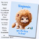 Un charmant petit lion avec fleurs bleues sur affiche rose pour la chambre d'un bébé