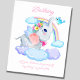 Flying Elephant & Bluebird with Fluffy Clouds & Rainbow Nursery Poster pour une chambre bébé