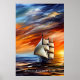 Poster Ajouter votre message, navire à voile au coucher d
