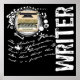 Un scrapbook numérique grunge unique design de collage d'une machine à écrire à l'ancienne avec le mot "Writer" et l'Alchimie de l'écriture avec des embellissements - juste pour les écrivains.