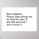 Chère algèbre, arrête de me demander de chercher ton X qu'elle t'a laissé et je ne connais pas Y.