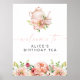Cette pancarte de bienvenue d'anniversaire présente des fleurs aquarelles printanières et un ensemble de thé mignon. Ce thé d'anniversaire est parfait pour votre petit-déjeuner ou brunch de mariage.