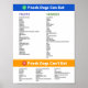Affiche énumérant tous les "aliments humains" que votre chien peut et ne peut pas manger. Un guide simple et utile pour garder votre chiot ou votre chien adulte en sécurité lorsqu'ils aiment le repas et les collations et gâteries occasionnelles! Facile à placer sur votre réfrigérateur ou à accrocher quelque part dans votre cuisine pour votre commodité.