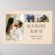 Créez un souvenir chaleureux avec cette affiche romantique de collage photo avec la citation bien-aimée "All of Me Loves All of You". Ce design personnalisable vous permet de présenter vos souvenirs préférés dans une belle mise en page, avec des noms et des emplacements personnalisés. Parfait pour célébrer l'amour, les anniversaires, les mariages ou la Saint-Valentin, cette affiche fait un cadeau significatif pour les couples ou un ajout spécial à votre propre maison. Le design élégant et épuré s'intègre harmonieusement dans les chambres, les salons ou tout espace où vous voulez exposer votre histoire d'amour.