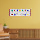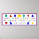 Affiche pédagogique colorée de l'alphabet anglais, chiffres, formes, et mains gauche et droite en rouge, bleu, jaune et vert. Les formes comprennent : carré, cercle, triangle, rectangle, diamant, octogone, pentagone, coeur et étoile.