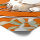 Poster avec un chaton blanc dans le style Art Nouveau d'Alphonse Mucha! Un beau chaton aux yeux bleus percevants regarde le spectateur. Des cercles géométriques oranges avec des feuilles verts et un treillis blanc entourent le chaton. Un cadeau parfait pour les amoureux de les chats et les collectionneurs Art Nouveau !