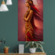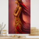 Poster Américaine Indienne robe rouge or plumes