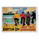 Affiche vintage pour les services de l'American Line de New York à Southampton, montrant des pêcheurs sur un quai regardant un paquebot naviguer à travers.