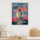 La Statue de la Liberté affichée en évidence au centre. Un drapeau américain vibrant agitant dans l'arrière - plan avec des feux d'artifice éclatant autour. "Happy 4 juillet !" en caractères vintages et gras en haut, avec "Celebrate Freedom" dans un script plus petit et élégant en bas. Le rouge, le blanc et le bleu traditionnel dégagent une atmosphère vintage et un peu défraîchie.