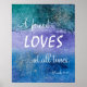 Poster Ami Aime Bleu pourpre Aquarelle Argent