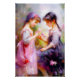 Un tableau généré par l'IA de deux amis admirant des fleurs dans un jardin. Ce serait une belle décoration pour une nurserie.
