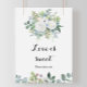 Ce panneau d'amour de feuillage de eucalyptus tropical est doux est parfait pour une douche de mariage de destination. Le design présente des roses illustrées étincelantes violettes, blanches, bleues et roses nichées dans un beau bouquet de feuilles vertes d'eucalyptus.