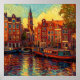 une belle peinture en style van Gogh des maisons de canal et des bateaux à usage domestique à Amsterdam