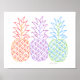Trio dessiné à la main d'une ligne d'ananas colorée. Le dessin est fait d'une seule ligne continue qui ne se croise pas. Pouvez-vous trouver les deux extrémités ?