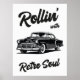 Célébrez l'élégance du passé avec ce graphisme noir et blanc saisissant avec une voiture d'époque et l'expression "Rollin' with Retro Soul." La palette de couleurs minimaliste met en valeur les détails complexes de la voiture, ce qui en fait un élément parfait pour les amateurs d'automobiles classiques et de design raffiné.