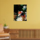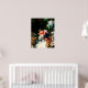 POSTER ANÉMONES ROSES ROUGES FLEURS BLANCHES, PAPILLON EN