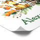 Affiche de chambre d'animaux de la forêt à l'aquarelle. Les bébés animaux comprennent un ours avec un nœud vert, un cerf, un élan, un raton laveur, un lapin, un renard et un hibou sur des feuilles d'eucalyptus et de la verdure forestière. Ajoutez un nom.