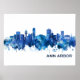 Blue Watercolor Skyline d'Ann Arbor, une ville à l'ouest de Detroit, dans l'état du Midwest du Michigan