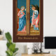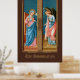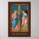 ". L'Ange du Seigneur déclara à Marie, ℟. Et elle conçut l'Esprit Saint." C’est ainsi que commence la prière trois fois par jour de l’Angelus, la Bienheureuse Vierge Marie (BVM), qui commémore l’Incarnation à l’Annonciation. + L'Annonciation était un sujet très populaire dans l'art du Moyen Âge et de la Renaissance. En tant que composition à deux personnes, le sujet se prêtait à l'utilisation sur les feuilles extérieurs des triptyques : l'ange sur une feuille; Marie, sur l'autre. Un triptyque est une oeuvre d'art, le plus souvent une peinture à panneau, qui est composée de trois parties articulées de telle sorte qu'elle puisse être affichée ouverte ou pliée fermée. + Ici, Filippo Lippi (1406-1469) a peint l'Annonciation en tempête sur le bois dans des roses chaudes, saumon et rouges et dans des bleus brillants et foncés. Les deux figures se tiennent dans leurs espaces respectifs étroits, l'Archange Gabriel se inclinant légèrement devant la douce et douce Maiden Mary. + Saints_Aabondance aime un arrière - plan brun foncé pour cette image. Un arrière - plan brun foncé donne l'impression aux spectateurs qu'ils sont spectateurs observant la scène par une fenêtre. Mais, comme d'habitude, nous avons fourni une carte postale Palette de Couleur pour d'autres teintes suggérées. + Fête de l'Annonciation : 25 mars ; Fête de Saint Gabriel l'Archange : 29 septembre + Crédit image (M 038) : Image antique de l'Annonciation de Filippo Lippi (1406-1469) d'une carte postale de fin du 19e siècle publiée à l'origine en chromolithographie, par E. Sborgi, Florence, Italie, de la collection privée de l'architecte d'éphémère religieux. Les panneaux d'origine d'un polyptyque d'origine inconnue se trouvent dans la salle philippine et philippine de la Galerie des Offices à Florence. L'Annonciation forme les moitiés supérieures des deux feuilles tandis que SS. Anthony Abbott et John le Baptiste apparaissent respectivement en bas à gauche et en bas à droite.