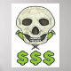 Le design anti Big Pharma montre un crâne aux yeux rouges qui s'estompent, des aiguilles croisées et des signes en dollars ci-dessous. Pour ceux qui ne croient pas en la Grande Pharma.