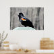 Un oiseau-noir à ailes rouges qui attire l'oeil donne son appel familier, bruyant et clair à annoncer le printemps est ici! Poster idéal pour la maison ou le bureau.