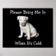 Joli taureau blanc de chiot vous demandant de l'amener quand il fait froid. Poster animal humain.