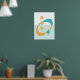 Poster Aqua Abstrait atomique du milieu du siècle, orange