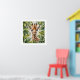 Belle illustration détaillée et réaliste d'une jeune girafe entourée de feuilles verdoyants. Les yeux expressifs de la girafe et ses détails complexes lui donnent un aspect vivant, ce qui rend l’oeuvre captivante et attrayante.