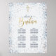 Élégant garçon bleu et or Baptême assise Graphique Poster. Design avec parties scintillant confetti arrière - plan, croix d'or et script de typographie "Baptême". Cliquez sur customiser plus loin pour modifier/modifier ce modèle.