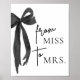 Aquarelle Bow Noir Moderne De Miss à Mrs Signer 💍 Célébrer la mariée à être dans un style élégant 🖤 Marquez le moment spécial avec notre Aquarelle Bow Noir Moderne De Miss à Mrs Sign. Doté d'un arc noir peint à la main et d'une typographie moderne propre, ce panneau ajoute une touche sophistiquée à toute douche nuptiale ou célébration fiançailles. Parfait pour les expositions de photos, les tables d’accueil ou les espaces cadeaux - c’est une façon intemporelle d’honorer son voyage à "Mme" avec grâce et charme.