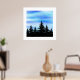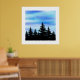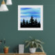 Poster Aquarelle Ciel Bleu Violet et Silhouette d'Arbres