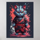 Poster Aquarelle cool Gris Ninja Chat Guerrier