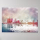 Le est une photo numériquement améliorée de la ligne aérienne de Détroit fait pour ressembler à une aquarelle de Detroit.