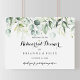 Cette affiche d'accueil de la répétition horizontale aquarelle est parfaite pour une répétition mariage rustique. Cette conception artistique présente un feuillage vert d'eucalyptus dessiné à la main, aquarelle, inspirant la beauté naturelle.