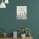 Bienvenue dans votre mariage avec cette affiche personnalisée ou sélectionnez l'option de la customiser plus loin pour ajouter plus de détails et de texte pour créer une signalisation pour votre journée spéciale. Cette affiche est parfaite pour les mariages de chalets de montagne et les événements sur le thème des bois. Elles ont un style simple mais élégant avec un accent illustrant une forêt de pins de grande taille ou à feuillage persistant dans les tons vert sauge, gris et vert pâle. L'aquarelle douce a une qualité calme et paisible, qui vous rappellera que le brouillard se lève sur un vitrage boisé. Le lettrage classique et élégant dans un vert à la sauge foncée coordonné indique les noms de la mariée et du marié ou votre propre message.