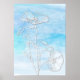 Poster Aquarelle et pavots Abstraits bleu ciel