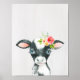 Poster Aquarelle Florale Vache noire et blanche