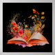 Poster Aquarelle Ouvert livre avec fleurs