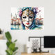 Poster Aquarelle peinture dame portant le Masque vénitien