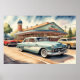Poster Aquarelle Peinture des voitures et des dîners