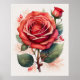 Poster Aquarelle Peinture d'un Rose Rouge II