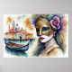Poster Aquarelle Peinture femme Masque vénitien VI